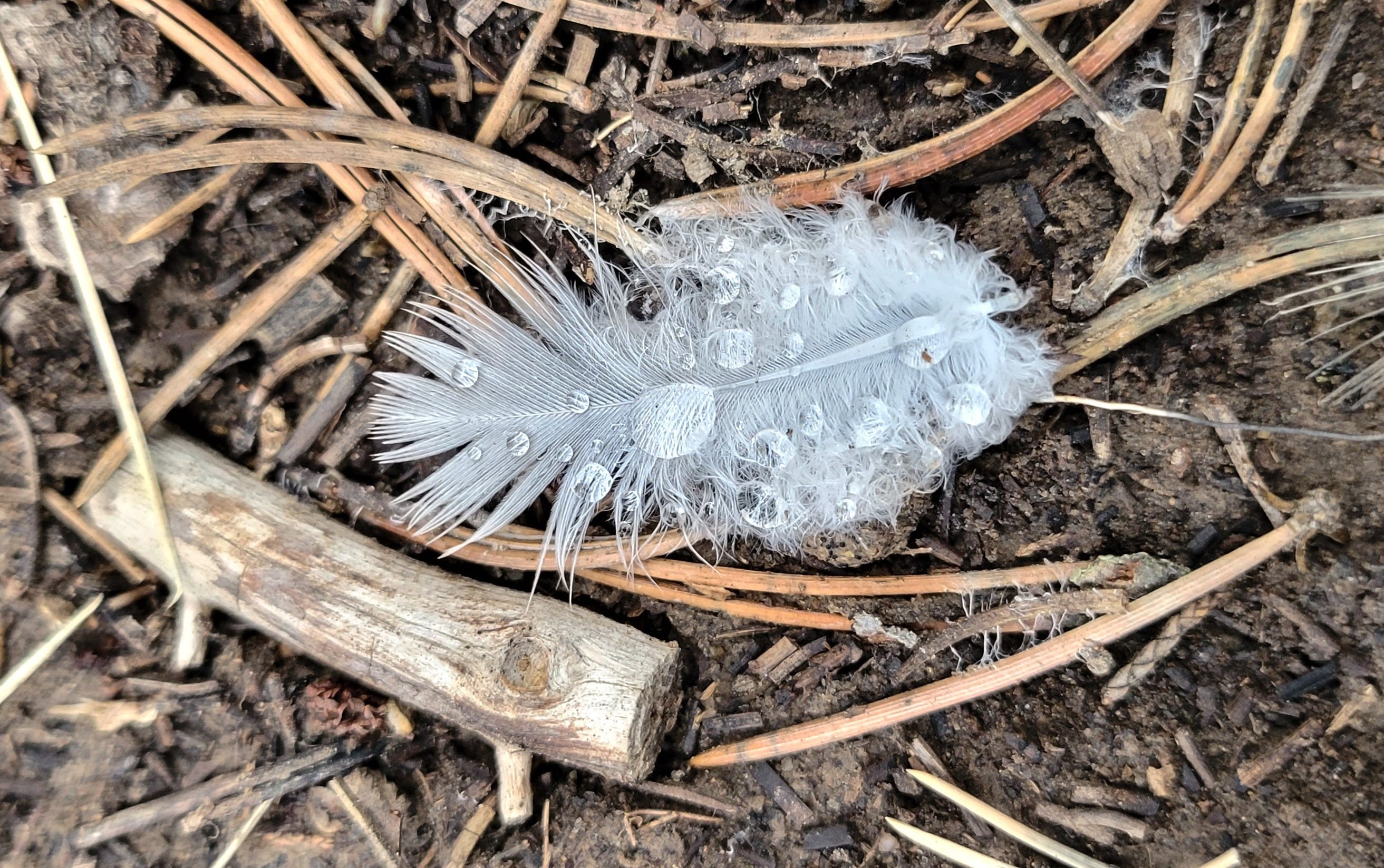 I watched the wind move the branches, the dark green needles glittering as if coated with ice. One morning, a raven flew in a circle around the tree, eyeing me, likely wondering what I was doing there and if I might be edible. On another, a brown creeper the size of a ping-pong ball weaved its way down the trunk, pulled a bug from the bark a foot above my head, then worked its way back up. On yet another, a flicker landed in the crown, shrilling its bright call, then took off again, the red underside of its wings like a shout of joy against the blue blue sky.